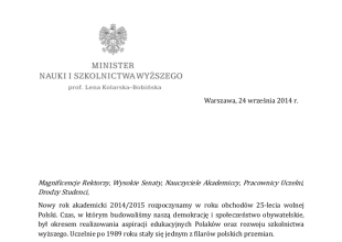 List inauguracyjny Minister Nauki i Szkolnictwa Wyższego