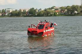 Amfibijny operacyjny pojazd ratowniczy (model II – Bukovina) podczas badań wodnych w Ośrodku Badawczo-Szkoleniowym Fundacji Bezpieczeństwa Żeglugi i Ochrony Środowiska na Jeziorze Silm w Iławie-Kamionce – próba prędkości