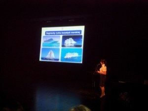 Fot. 3. Pani Magdalena Muzyka, studentka Akademii Morskiej w Gdyni na Kierunku Towaroznawstwa Specjalność Organizacja Usług Turystyczno-Hotelarskich prezentująca referat podczas Regionalnych Obchodów Światowego Dnia Turystyki.