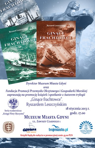 18 stycznia 2013r.o godz. 17:00 w Muzeum Miasta Gdyni odbędzie się promocja książeki spotkanie z Autorem trylogii "Ginące frachtowce", Ryszardem Leszczyńskim.
