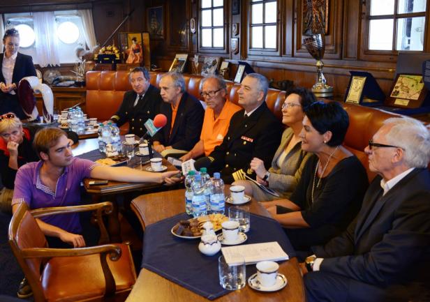 Piękna słoneczna pogoda stanowiła znakomitą oprawę uroczystości. Już przed godz. 16.00 wokół miejsca postoju żaglowca gromadzili się ludzie zainteresowani przygotowaniami do wypłynięcia. Z pokładu „Daru Młodzieży” o idei Projektu mówili jego inicjatorzy, profesorowie Marian Zembala i Witold Rużyłło, Marszałek Sejmu pani Ewa Kopacz, Wiceminister Spraw Zagranicznych Beata Stelmach, prezes Polskiego Towarzystwa Kardiologicznego prof. Janina Stępińska. O roli i udziale Akademii Morskiej w Gdyni w tej zaszczytnej misji mówił jej rektor, prof. zw. dr hab. Piotr Jędrzejowicz.