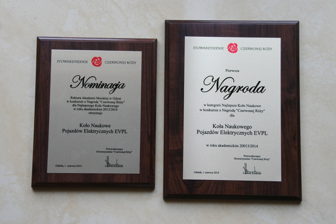 W konkursie Czerwonej Róży najlepszym Kołem Naukowym Pomorza zostało Koło Naukowe Pojazdów Elektrycznych EVPL z Akademii Morskiej w Gdyni. Koło otrzymałow nagrodę 12.000 zł ufundowaną przez CHIPOLBROK Chińsko-Polskie Towarzystwo Okrętowe.