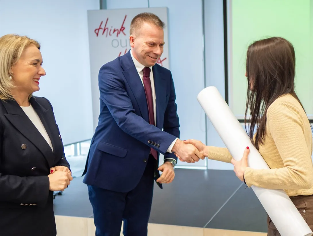 Całość wydarzenia przeplatały wystąpienia Prezeski dr hab. Sylwii Mrozowskiej oraz Wiceprezesa dr Andrzeja Poszewieckiego, którzy opowiadali m.in. o wizji przyszłości Univentum Labs i znaczeniu spółki dla uczelni i lokalnego ekosystemu, podkreślając przy tym obecność uniwersyteckich spółek odpryskowych.