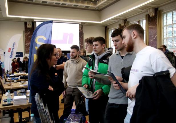 Ciekawe oferty praktyk i staży, stanowiska firm i duże zainteresowanie ze strony studentów – tak wyglądały pierwsze w historii naszej uczelni Marynarskie Targi Pracy. W dniu 23 stycznia 2025 roku w samym centrum naszej uczelni, w auli T. Meissnera Uniwersytetu Morskiego w Gdyni, odbyły się I Marynarskie Targi Pracy.