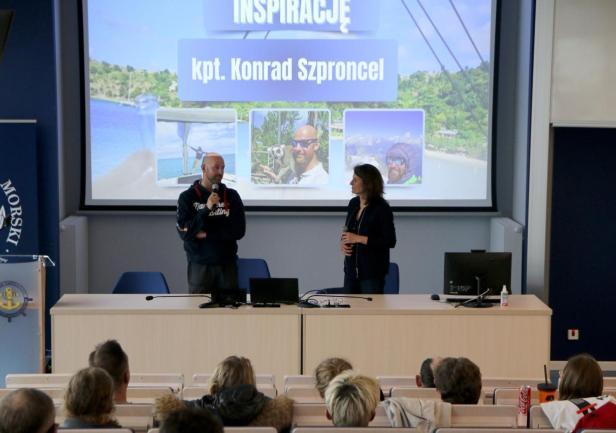 Spotkania pn. „Kurs na inspirację" organizowane są przez Ośrodek Żeglarstwa i Sportów Wodnych Uniwersytetu Morskiego w Gdyni. Gościem pierwszego wydarzenia był kpt. Konrad Szproncel, który jako zawodowy żeglarz zakotwiczył na Brytyjskich Wyspach Dziewiczych, gdzie prowadzi czartery i przeprowadza jachty. Jest również pasjonatem, zdobywcą największych górskich szczytów, autostopowiczem z własnym camperem oraz jachtostopowiczem z paralotnią. Człowiekiem niestrudzenie realizującym własne marzenia, a przy tym wspierającym innych ludzi o podobnych aspiracjach.