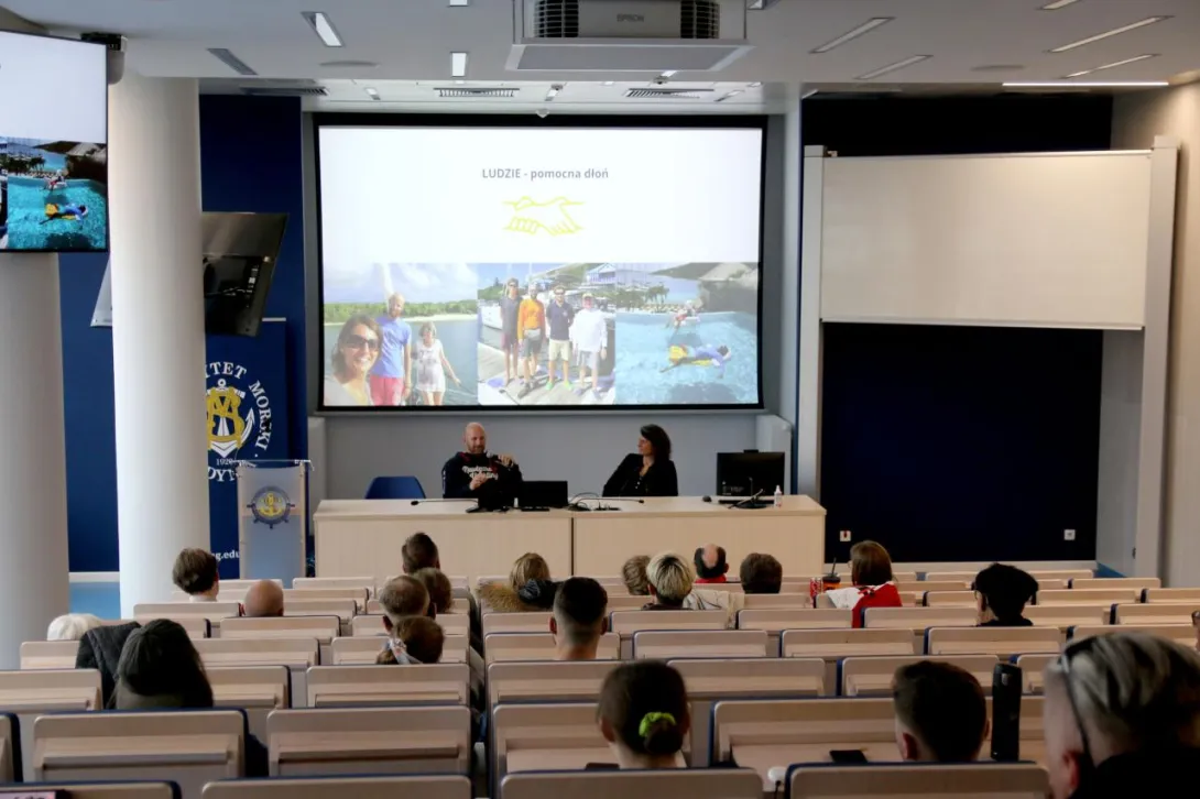 W dniu 8 maja 2025 roku o godz. 18:00 w auli Wydziału Nawigacyjnego odbyło się pierwsze z cyklu spotkań z wyjątkowymi ludźmi, pokazujących swoją postawą, że życie nie musi toczyć się według utartych schematów, dla których nadrzędnym celem pozostaje realizacja marzeń i życie według własnego pomysłu.