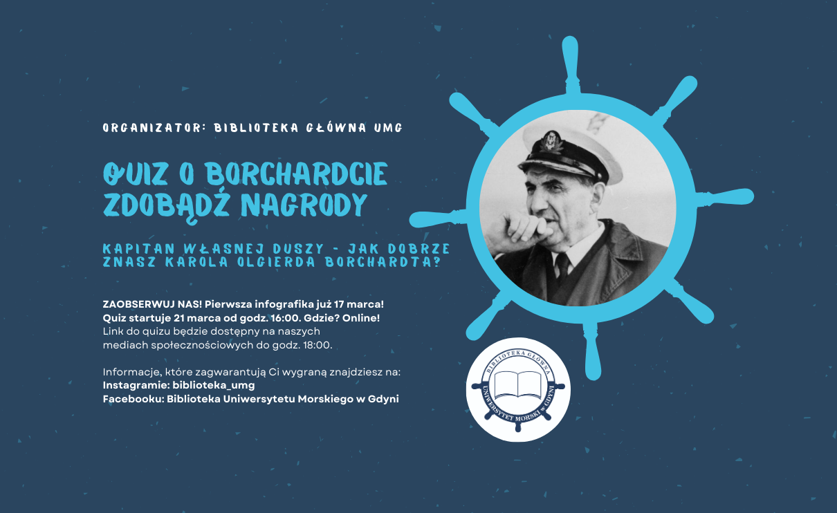 21 marca odbędzie się internetowy Quiz Biblioteki Głównej pt. „Kapitan własnej duszy” – jak dobrze znasz K. O. Borchardta? Na zwycięzców czekają nagrody książkowe i gadżety.
