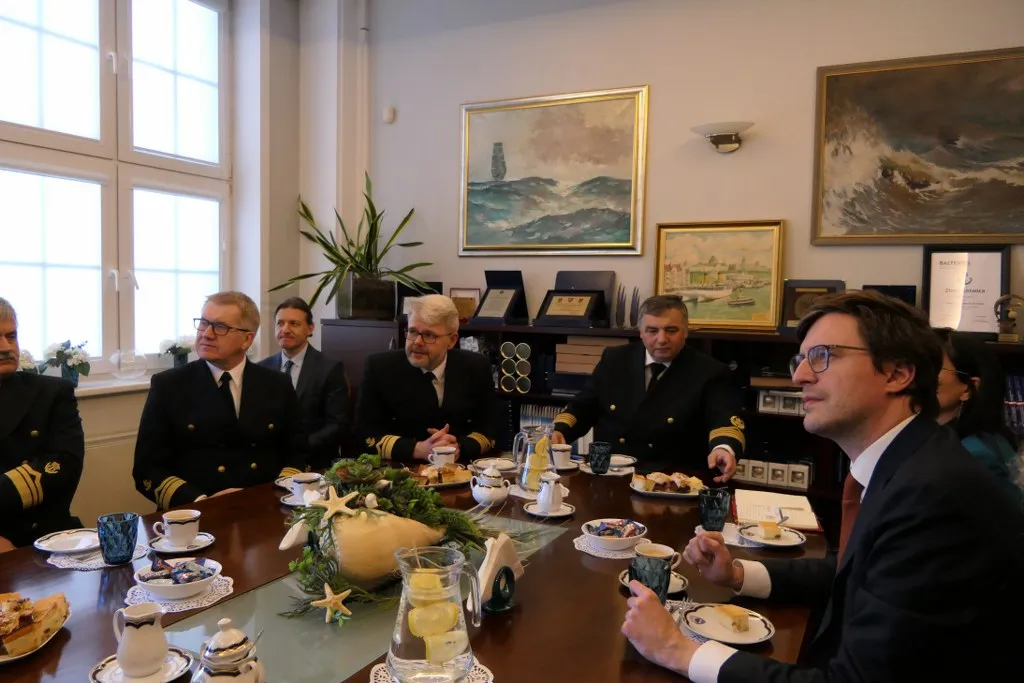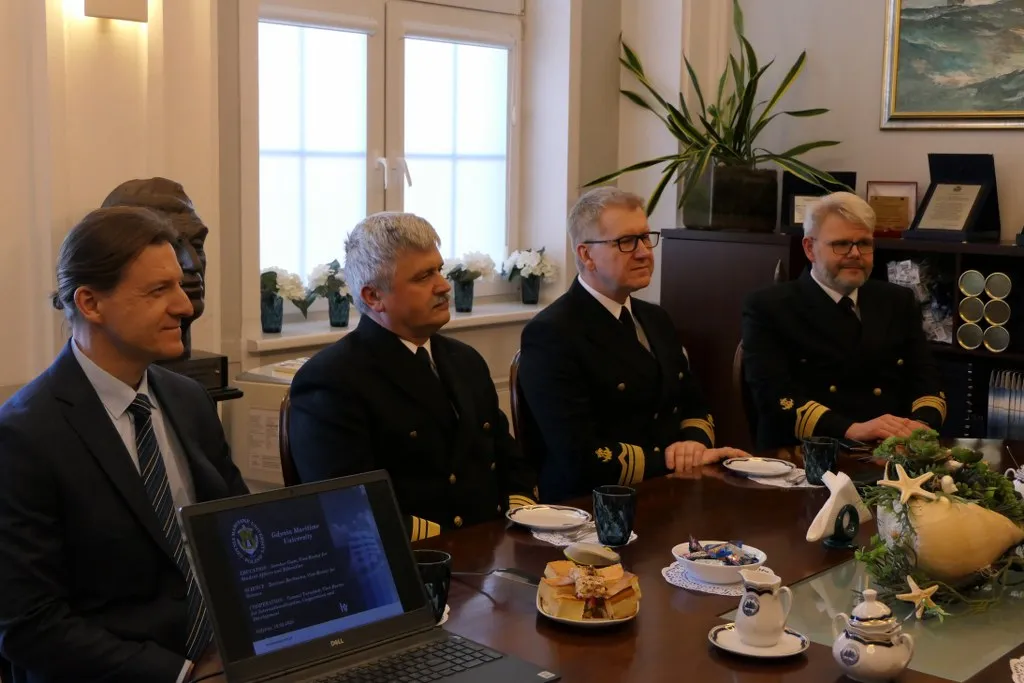 W spotkaniu ze strony Uczelni udział wzięli: JM Rektor prof. dr hab. inż. kpt. ż.w. Adam Weintrit, Prorektor ds. Nauki dr hab. Dariusz Barbucha, prof. UMG, Prorektor ds. Studenckich i Kształcenia dr hab. Sambor Guze, prof. UMG, Prorektor ds. Umiędzynarodowienia, Współpracy i Rozwoju prof. dr hab. inż. Tomasz Tarasiuk, Dyrektor Działu Armatorskiego i Praktyk Morskich mgr inż. kpt. ż.w. Dariusz Jellonnek oraz dr inż. kpt. ż.w. Piotr Kopacz z Wydziału Nawigacyjnego UMG.