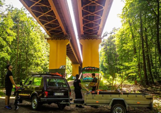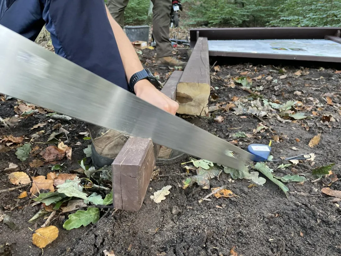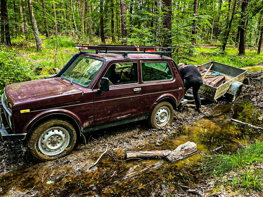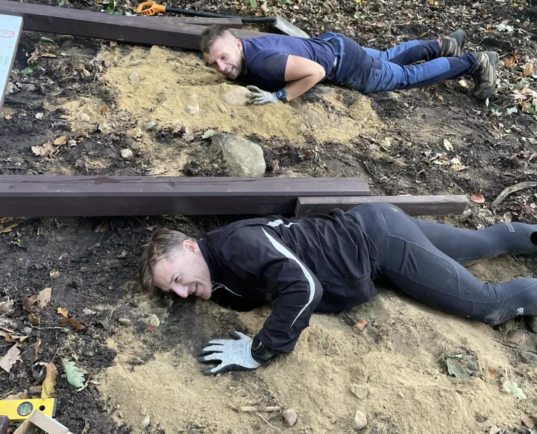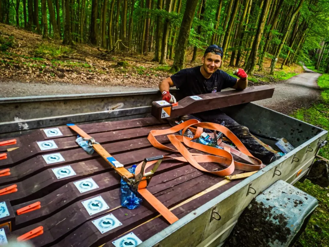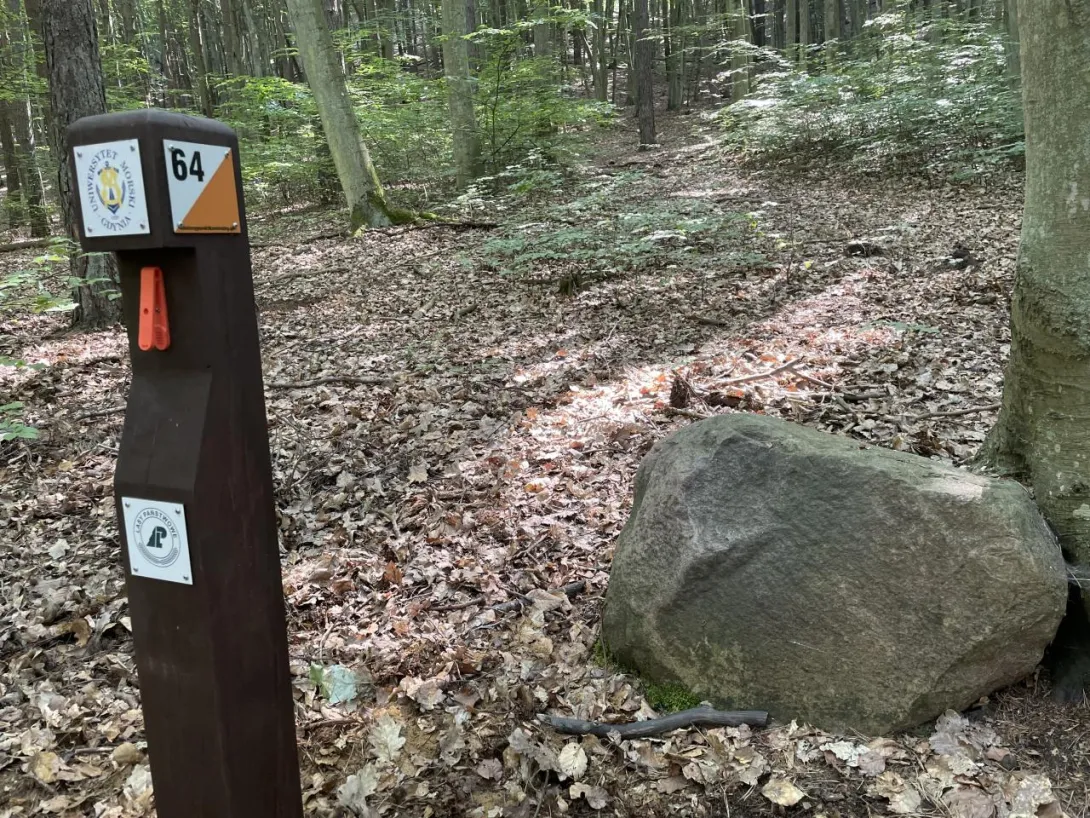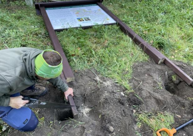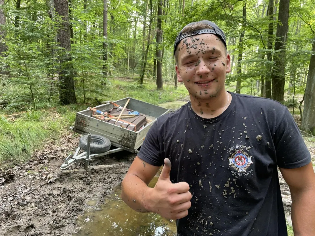 (...) Wszystkie 42 punkty kontrolne (PK) w formie dębowych słupków udało się nam "zasadzić" w terenie w jeden dzień. Była to upalna sobota 15.VII.2023r. Pierwszym zainstalowanym punktem kontrolnym był PK 45 w południowej i najbardziej płaskiej części obszaru ZPK-UMG. Mimo iż nie obyło się bez małych przygód na błotnistych leśnych drogach (m.in. konieczne były rozprzęgania przyczepy i wyciągania samochodu, który ugrzązł w paru miejscach) i intensywnej pracy, świetna atmosfera towarzyszyła nam przez cały dzień. "Grupa robocza" składała się z czterech osób: druhów Antka Dopke, Szymona Helanda, na czele z Kamilem Dopke z Ochotniczej Straży Pożarnej w Bojanie, którym należą się szczególne podziękowania za pomoc w montażu infrastruktury, oraz Piotra Kopacza z Wydziału Nawigacyjnego UMG - pomysłodawcę i koordynatora całego projektu. Warto wspomnieć, iż Kamil jest absolwentem Wydziału Mechanicznego UMG sprzed kilku lat.