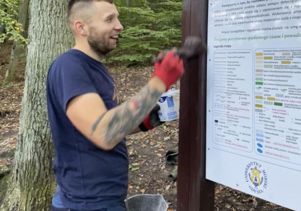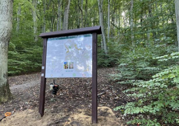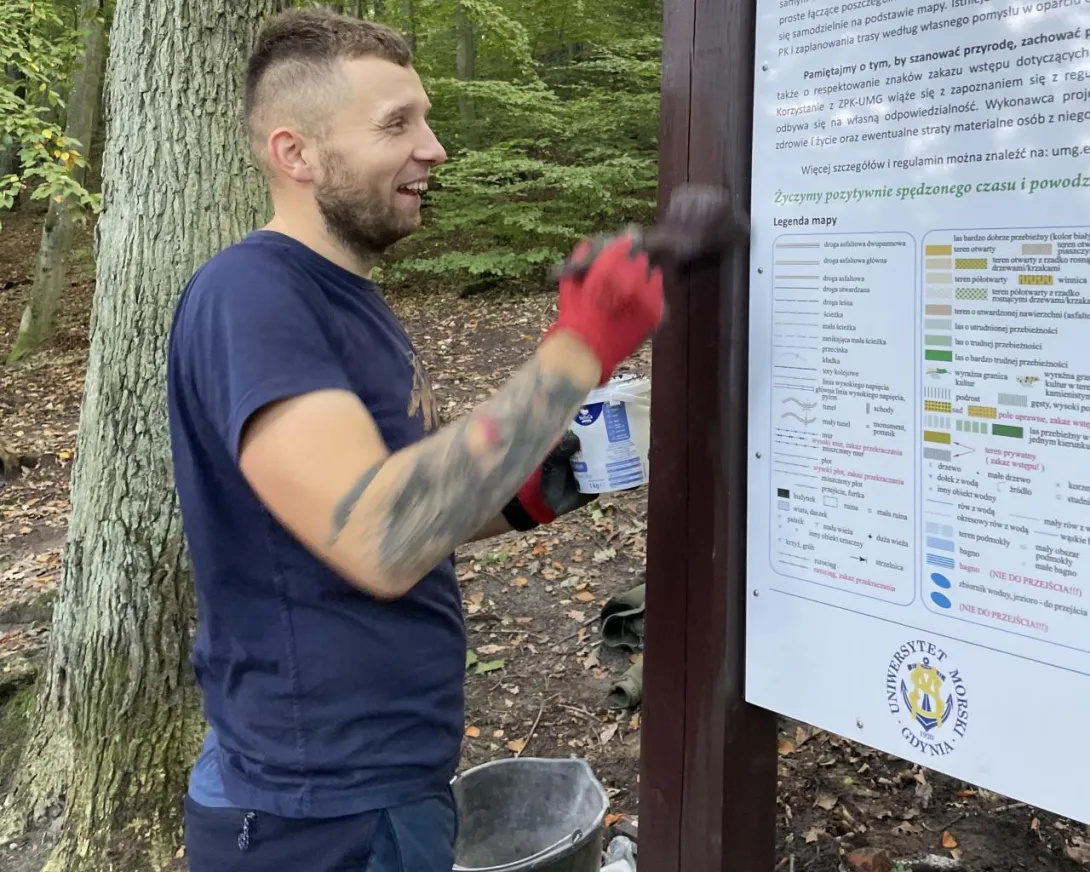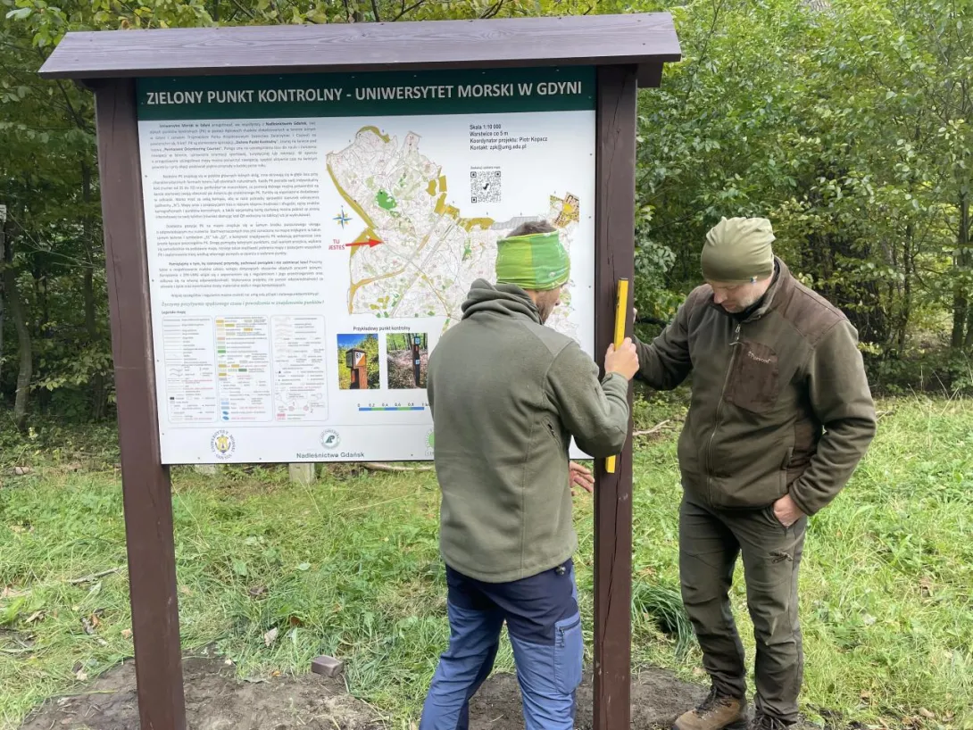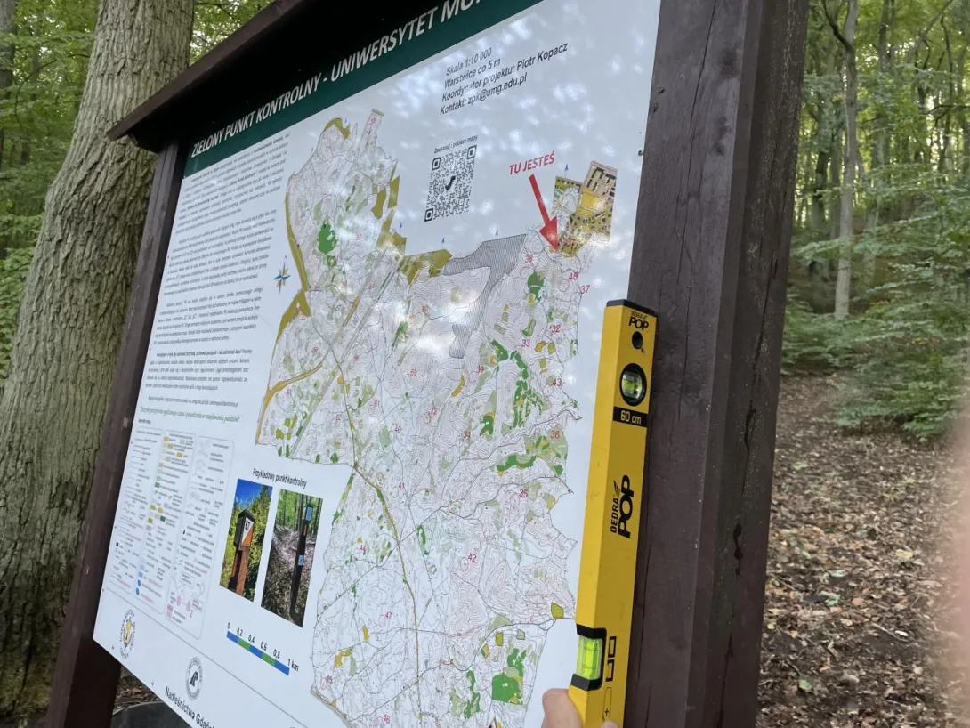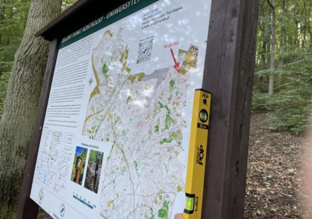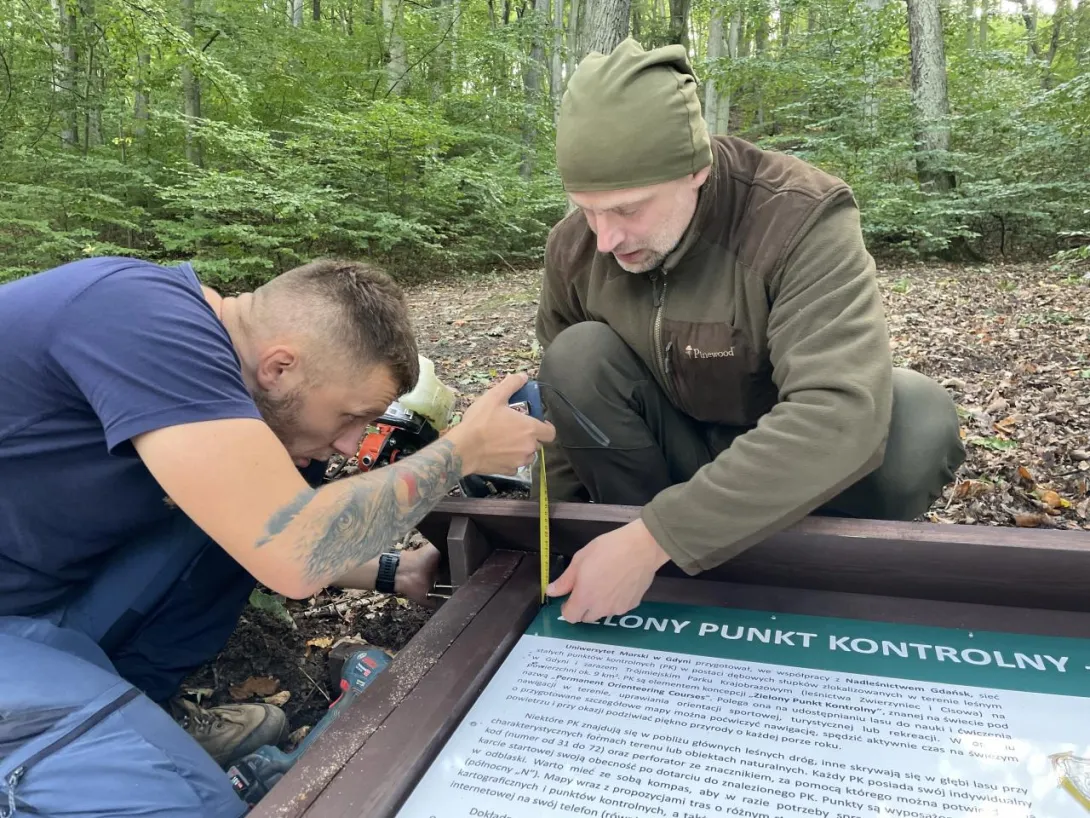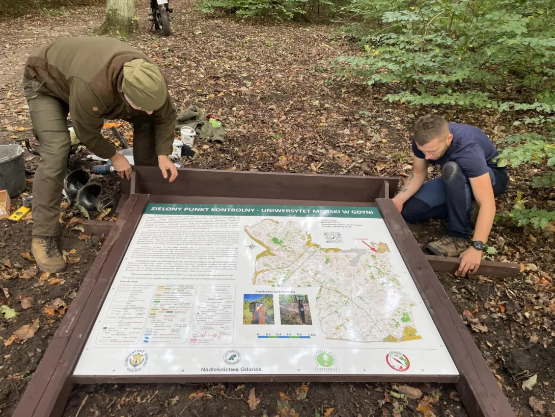 Tablice informacyjne zostały zamontowane w dniu 12.X.2023r. w miejscach wyznaczonych startów, tj. "S1" (dla mapy "Grabówek") i "S2" (dla mapy "Chylonia"). Praca ta została wykonana przez Kamila Dopke i Piotra Kopacza, przy wsparciu Piotra Pielenia - leśniczego z leśnictwa Zwierzyniec w Gdyni. W dniu 17.V.2024r. została także postawiona trzecia tablica wraz z dodatkowym PK 73, zlokalizowana na terenie kampusu UMG. Znajduje się ona tuż przy nowej nowej hali sportowej w Centrum Sportu i Rekreacji UMG. Warto także dodać, iż na tablicach informacyjnych, jak i każdym PK w terenie znajduje się kod QR (w prawym dolnym rogu biało-czerwonej tabliczki), co pozwala na alternatywne "zaliczanie" punktów poprzez skanowanie smartfonem i aplikację iOrienteering (instrukcja "krok po kroku" TUTAJ). Drugi, mniejszy kod QR (w prawym górnym rogu biało-czerwonej tabliczki PK) odsyła z kolei do niniejszej strony internetowej ZPK-UMG.
