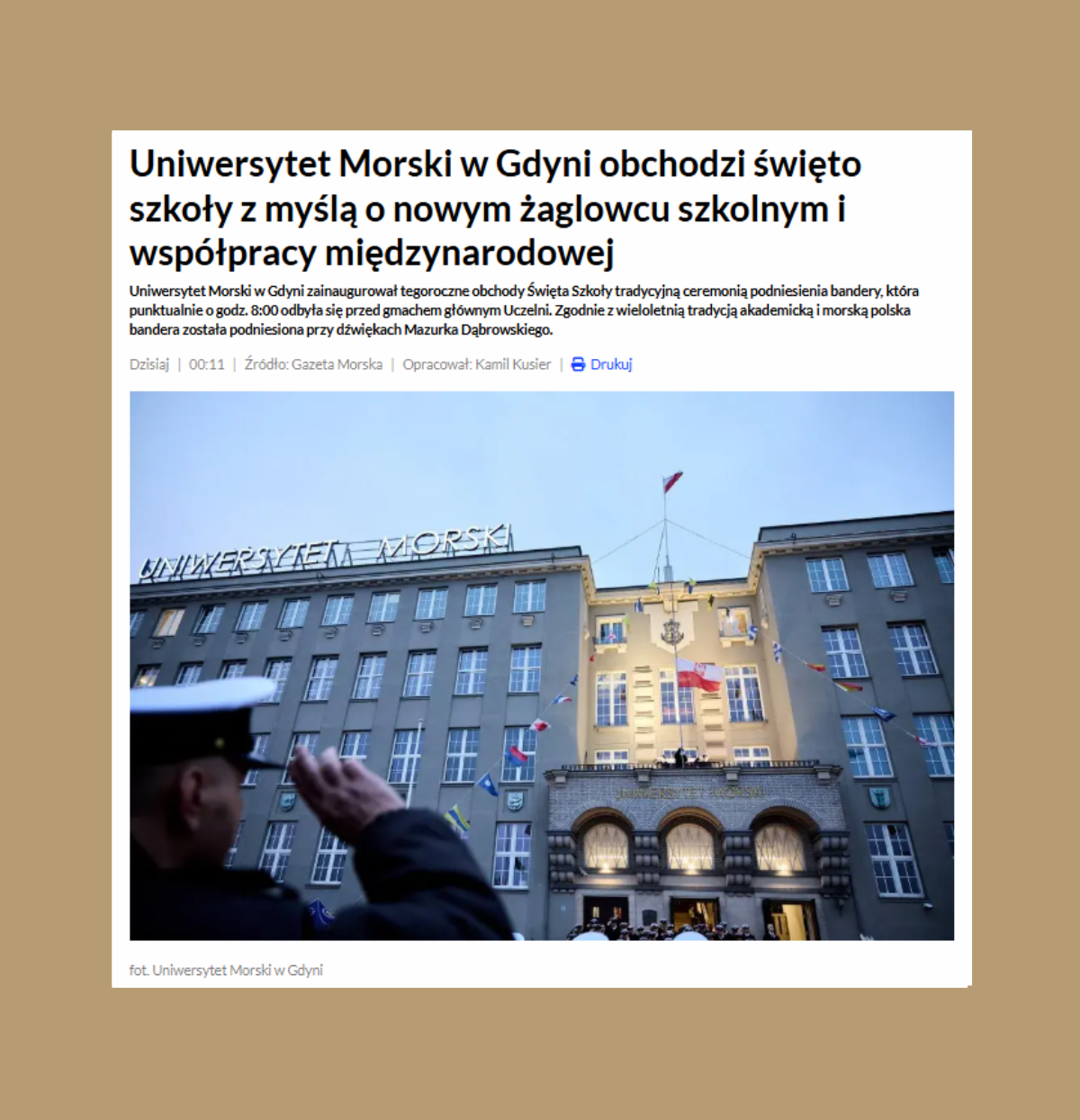 Uniwersytet Morski w Gdyni jest jedną z największych akademickich uczelni morskich w Unii Europejskiej i na świecie, uczelnią o bogatych morskich tradycjach, w której z dumą nosimy mundur i w której honor oddajemy polskiej banderze.