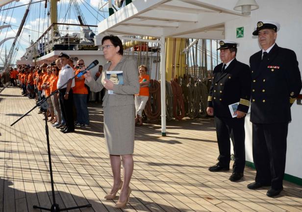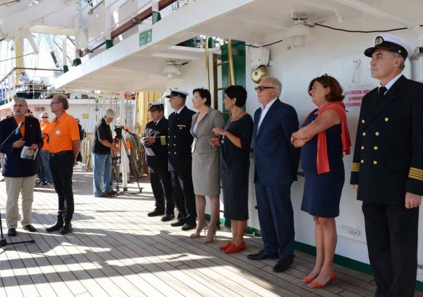 Piękna słoneczna pogoda stanowiła znakomitą oprawę uroczystości. Już przed godz. 16.00 wokół miejsca postoju żaglowca gromadzili się ludzie zainteresowani przygotowaniami do wypłynięcia. Z pokładu „Daru Młodzieży” o idei Projektu mówili jego inicjatorzy, profesorowie Marian Zembala i Witold Rużyłło, Marszałek Sejmu pani Ewa Kopacz, Wiceminister Spraw Zagranicznych Beata Stelmach, prezes Polskiego Towarzystwa Kardiologicznego prof. Janina Stępińska. O roli i udziale Akademii Morskiej w Gdyni w tej zaszczytnej misji mówił jej rektor, prof. zw. dr hab. Piotr Jędrzejowicz.