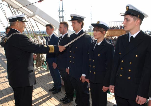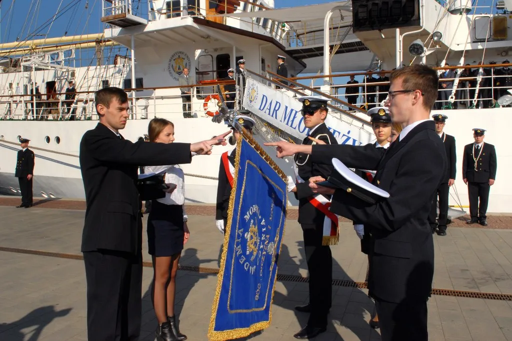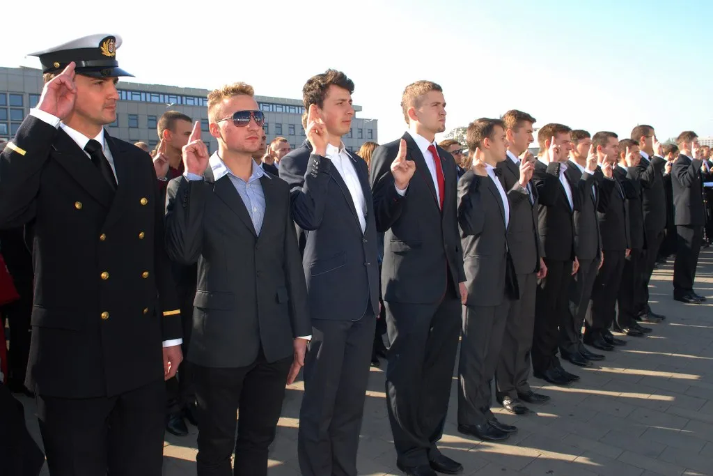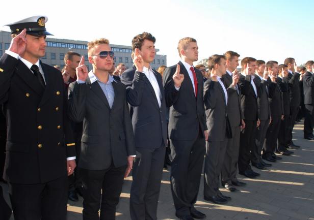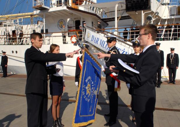 Czworo studentów, którzy uzyskali najlepsze wyniki w czasie rekrutacji, ślubowało – w imieniu wszystkich studentów – na sztandar Akademii Morskiej: Marta Wojtczak (WN), Eryk Wojdyła (WM), Leszek Dybowski (WE) oraz Agnieszka Owczarek (WPiT).