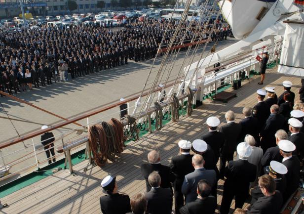 Oprawa tej uroczystości była wyjątkowa: z udziałem reprezentacyjnej orkiestry Marynarki Wojennej, chóru Akademii Morskiej oraz mieszkańców Gdyni i turystów.