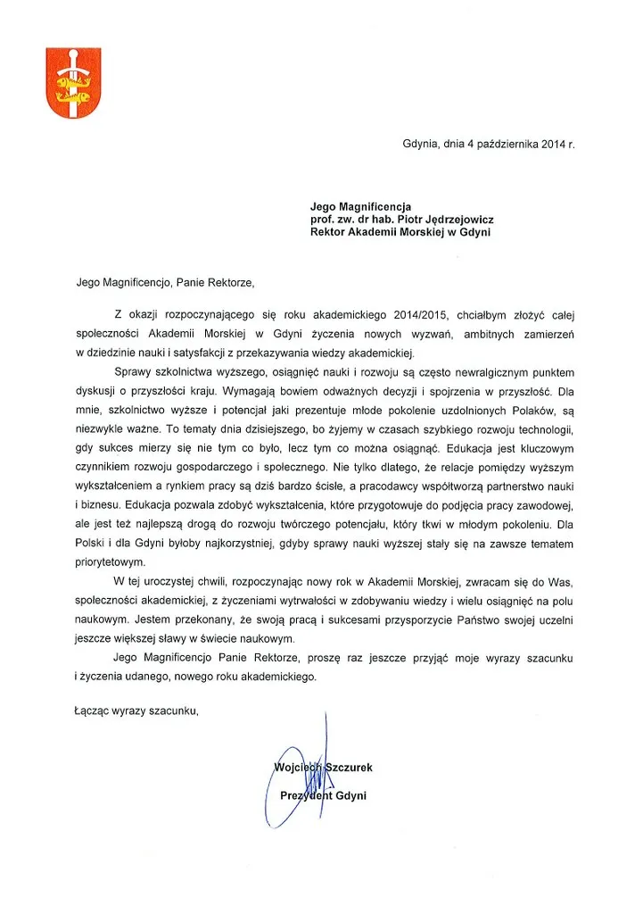 4 października 2014r. na Skwerze Kościuszki w Gdyni, przed ,,Darem Młodzieży” odbyła się uroczysta inauguracja 13 roku akademickiego w naszej Akademii, a zarazem 94 w bogatej historii szkolnictwa morskiego w Polsce.