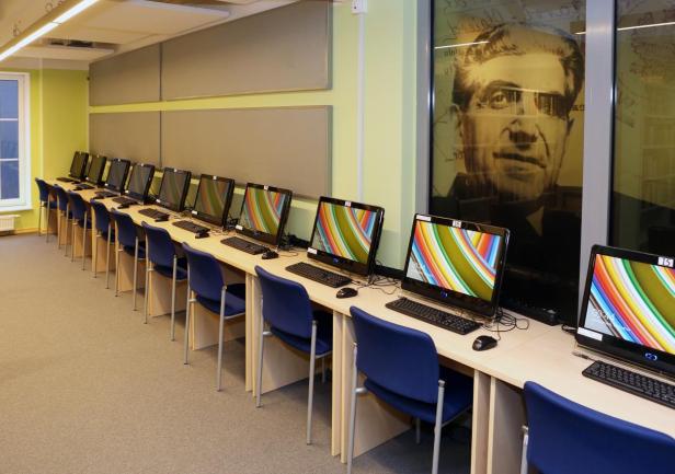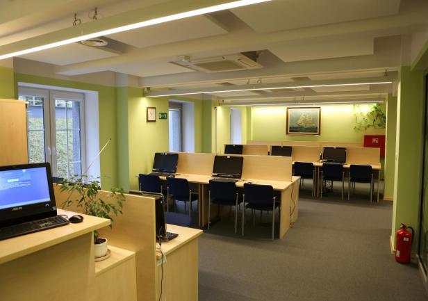 SALA MULTIMEDIALNA stworzyła nowe możliwości prowadzenia szkoleń i samokształcenia bibliotekarzy poprzez szkolenia on-line. W tej sali mogą odbywać się także spotkania i konferencje.