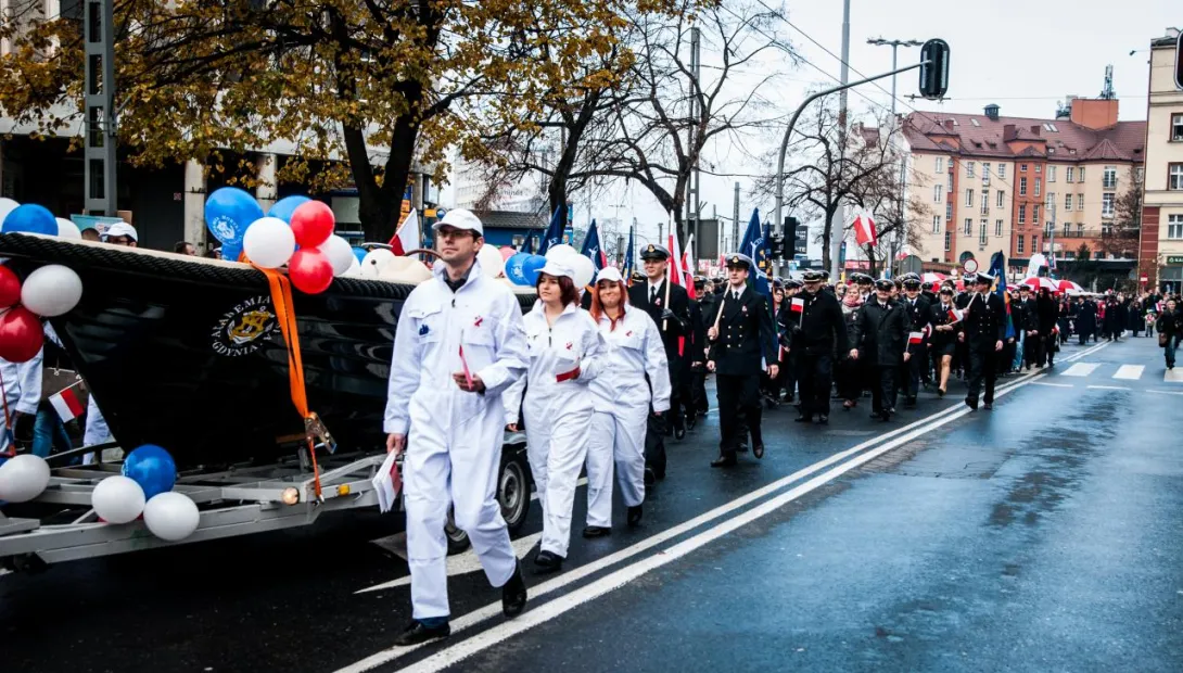 11 listopada 2014 roku studenci i pracownicy naszej uczelni uczestniczyli w gdyńskich obchodach 96-tej rocznicy odzyskania przez Polskę niepodległości. Jednym z głównych akcentów obchodów była barwna i wesoła Parada Niepodległości, której uczestnicy przeszli trasą, od Placu Konstytucji, ul. 10 Lutego, aż pod Płytę Marynarza Polskiego na Skwerze Kościuszki, gdzie miały miejsce oficjalne uroczystości z udziałem władz miasta. W szyku uformowanym przez Akademię Morską w Gdyni nie zabrakło uczelnianych maskotek, łodzi elektrycznej oraz kolorowych balonów i flag z logotypem Uczelni.