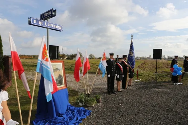 Uroczystość odsłonięcia - a chyba raczej, oficjalnego wprowadzenia w skład miejskiej infrastruktury drogowej nowej ulicy, poprowadził wiceprzewodniczący Rady Miasta pan Jerzy Miotke. Gośćmi honorowymi ceremonii byli - córka Komendanta, pani Małgorzata Łobodzińska-Jurkiewicz i syn pan Andrzej Jurkiewicz. Oboje, w towarzystwie rektora Akademii Morskiej pana profesora Piotra Jędrzejowicza, dyrektor SP 39 im. Kazimierza Jurkiewicza pani Sabiny Dawidowskiej oraz pana kmdr por. Adama Duczmala, reprezentującego Akademię Marynarki Wojennej, przecinając bialo-czerwoną szarfę, wpisali w mapę Gdyni kolejny, swoisty pomnik Komendanta. Po zbudowaniu tutaj zaplanowanego osiedla, w wielu gdyńskich dowodach pojawi się adres: "ul. kpt.ż.w. Kazimierza Jurkiewicza".