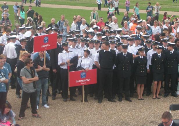 Warto podkreślić, że warunki nie sprzyjały dużym żaglowcom, a „Dar” był w stawce największy. Słabe, zanikające wiatry preferowały jednostki lekkie, stąd specjalne wyrazy uznania od organizatorów dla komendanta Rafała Szymańskiego, za umiejętną taktykę na trasie. Na pokładzie praktykę morską przechodzą studenci Akademii Morskiej w Gdyni, a szkolną załogę na trasie Falmouth – Greenwich uzupełniało 19 Brytyjczyków. Po minięciu linii mety, żaglowce skierowały się do Londynu, gdzie w rejonie Greenwich zaplanowano finałowe imprezy zlotu żaglowców.