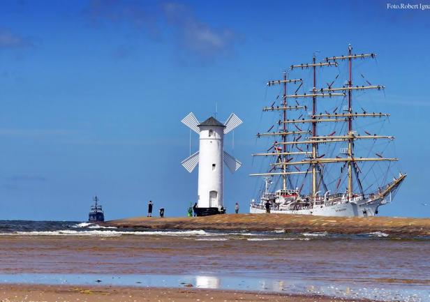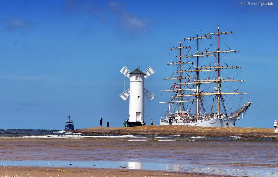 I jeszcze suplement - fotografia z przejścia "Daru" (12.06.2014.), w paradzie rejowej, obok słynnego wiatraka w Świnoujściu.