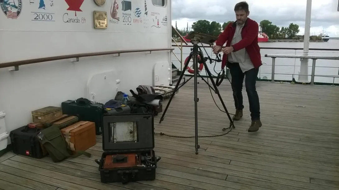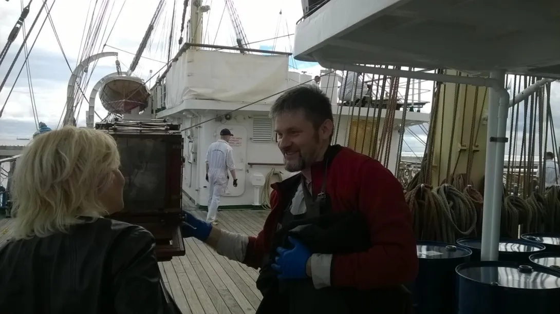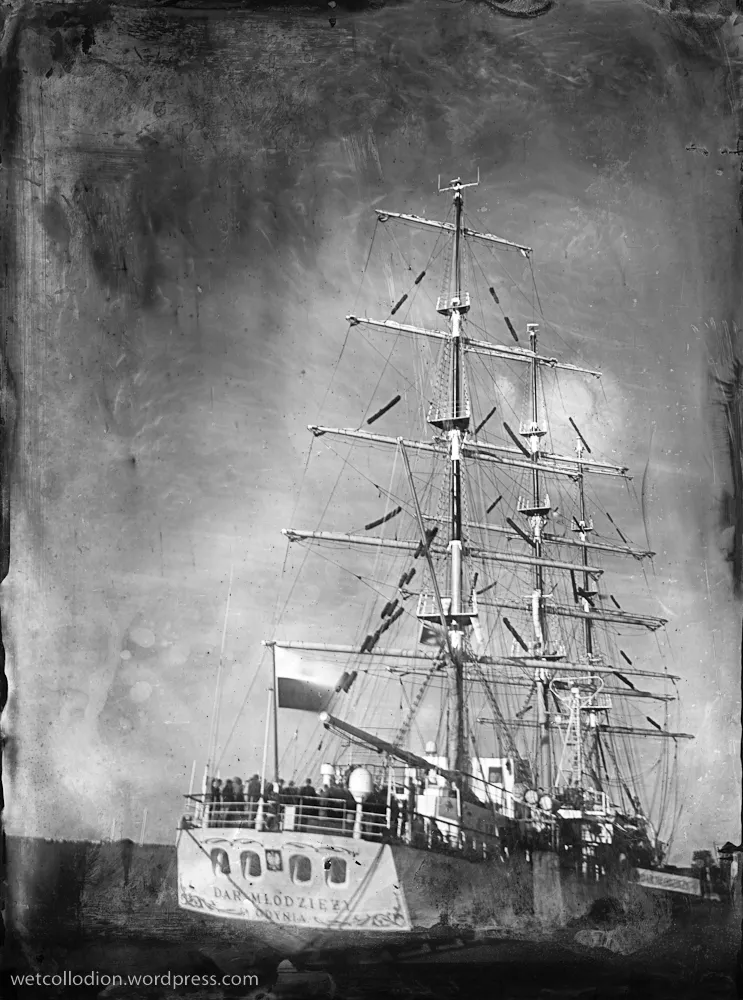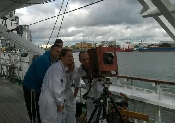 To był niezwykły eksperyment. Na jesienny rejs z Goteborga do Gdyni zaokrętował na „Dar Młodzieży” pan Andrzej Górski – człowiek zafascynowany XIX wieczną fotografią. Podczas rejsu wykonał, tradycyjną techniką tzw. mokrego kolodium z pionierskich lat fotografii , przy użyciu ponad 100-letniego aparatu, serię zdjęć ukazujących życie żaglowca.