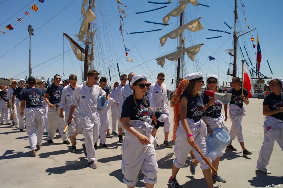 Lizbona przywitała nas bardzo ciepło. Zarówno jeśli idzie o temperaturę powietrza jak i temperaturę relacji międzyludzkich. Kolorowy tłum przywitał flotyllę żaglowców, na której czele przybył między innymi „Dar Młodzieży”. Podczas postoju wprawdzie nie mogliśmy się równać, pod względem obfitości zdobień statków i mundurów, także talentów muzycznych załóg, z żaglowcami krajów latynoamerykańskich, jednak wszyscy odwiedzający, a codziennie tysiące przechodziły przez nasz pokład, zwracali uwagę na porządek, czystość i stan techniczny naszego żaglowca. Pod tym względem, rzeczywiście pozytywnie się wyróżnialiśmy. Zaskoczyliśmy również naszym udziałem w paradzie załóg. Otóż część reprezentujących nas studentów, jak zwykle wystąpiła w nienagannych mundurach, reszta natomiast poprzebierana, wyposażona w tuby i bębny, stanowiła barwny korowód wypełniający śpiewem ulice Lizbony. Udział w regatach i imprezach The Tall Ship Races zaowocował mnóstwem międzynarodowych, żeglarskich przyjaźni. Szczególne więzi nawiązaliśmy z meksykańskim żaglowcem „ Cuauhtemoc” i norweskim „Statsraad Lehmkuhl” oraz co oczywiste – z polskimi żaglowcami „Fryderyk Chopin” i” Pogoria”.