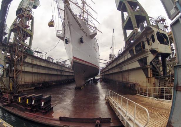 Na masztach sprawdzone zostaną elementy olinowania stałego oraz tzw. bejfuty czyli przegubowe mocowania rei do masztów. Ponadto przeprowadzone zostaną szczegółowe przeglądy wyposażenia i urządzeń pokładowych – m.in. kluz, kabestanów, wind, łańcuchów… Ważnym fragmentem prowadzonych prac, będzie kompleksowa wymiana stosowanych na statku olejów na biodegradowalne oleje nowej generacji wraz z wymianą i montażem dostosowanych do nich uszczelek. Gwarantuje to „Darowi Młodzieży” spełnienie ostrych rygorów ochrony środowiska, obowiązujących na wodach i w portach Północnej Ameryki, dokąd fregata popłynie w ramach rejsu dookoła świata. By wypełnić te najwyższe normy, zamontowane zostaną także, najnowszej generacji, systemy oczyszczania ścieków i fekaliów.