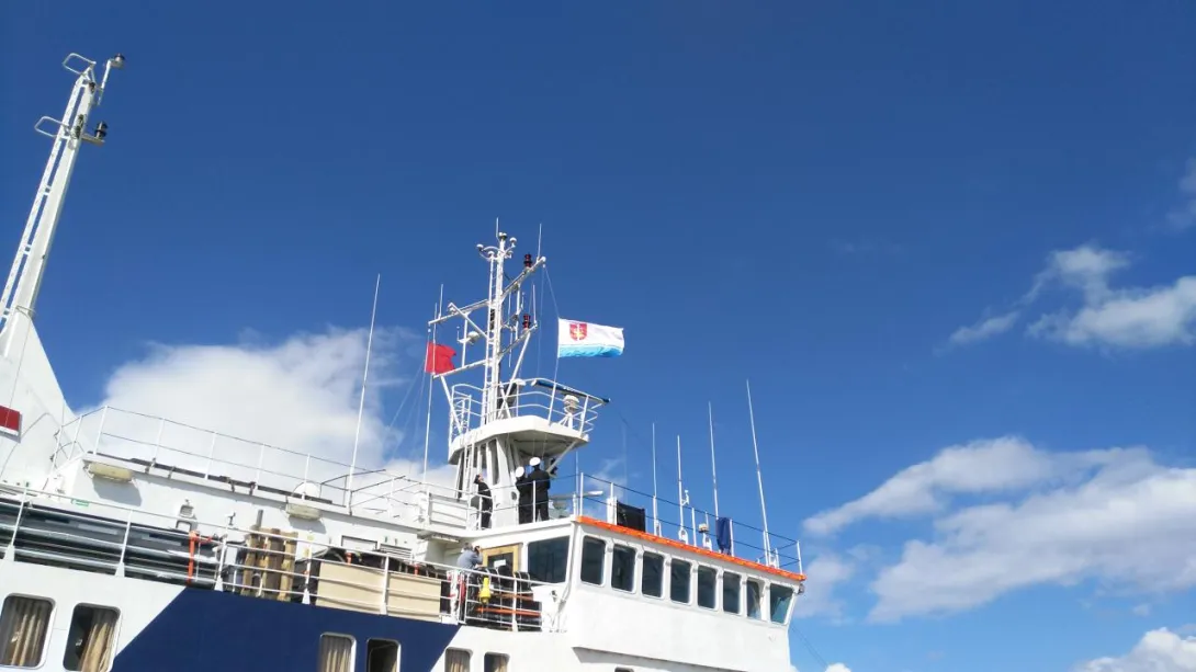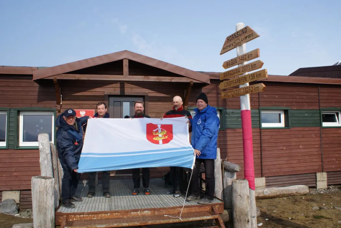 Nasz statek naukowo-badawczy "Horyzont II", w 15-tą rocznicę służby pod biało-czerwoną banderą (2015 r.), otrzymaną gdyńską flagę zawiózł na arktyczną wyspę Spitsbergen, gdzie podniesiona została obok flag narodowych Polski i Norwegii przed budynkiem Polskiej Stacji Polarnej Hornsund. Na wystawę trafiło zdjęcie grupy członków załogi "Horyzonta II" i polarników stojących przed stacją, po podniesieniu flagi Gdyni, uwiecznione obiektywem aparatu pani mgr inż. Joanny Patrzyk z Katedry Elektroniki Morskiej, Wydziału Elektrycznego AMG - opiekunki praktyk studentów WE.