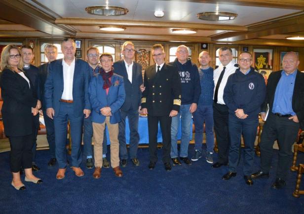 Na koniec dnia miała miejsce niespodziewana dla naszych gości wizyta Magdy Gessler. Pani Gessler na pokładzie Daru Młodzieży filetowała śledzie, przygotowując się do kolejnego odcinka swojego programu.