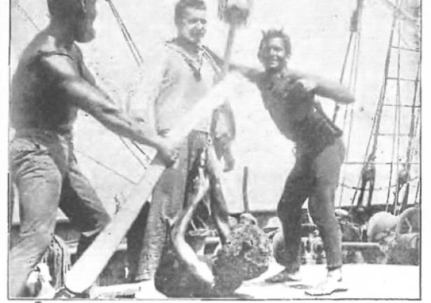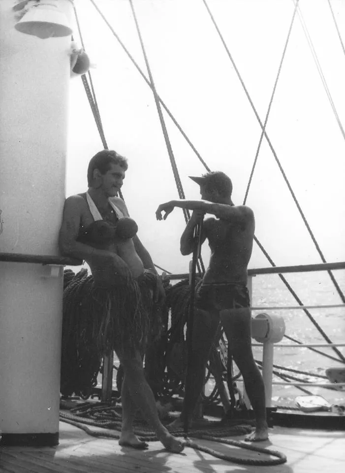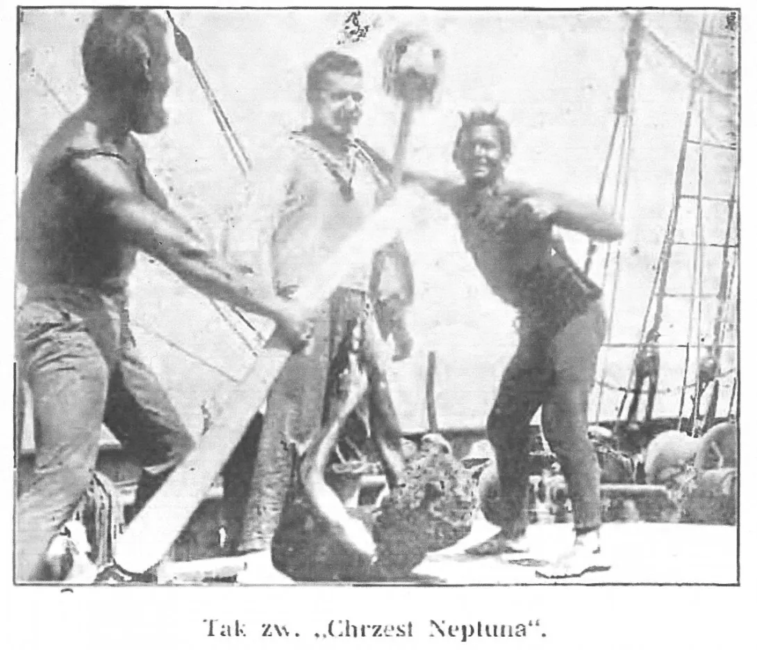 Nie mając jak dotąd relacji z pokładu "Daru" w jaki sposób uhonorowano tym razem przejście równika, pragniemy przypomnieć moment pierwszego w historii biało-czerwonej bandery przejścia równika. Stało się to 95 lat temu - 13 sierpnia 1923 roku - pierwszy polski żaglowiec szkolny "Lwów" przeszedł tego dnia na półkulę południową podczas pionierskiej, transatlantyckiej podróży do Brazylii. Ten pierwszy, historyczny chrzest morski uczniowie Szkoły Morskiej w Tczewie - uczestnicy rejsu przygotowali bardzo starannie i drobiazgowo. Powstał szczegółowy scenariusz, rozpisano role, napisano wierszowane kwestie wszystkim postaciom spektaklu. Przytaczamy krótkie fragmenty tamtych rozbudowanych literackich prób autorstwa uczestników rejsu - późniejszych słynnych kapitanów, twórców morskiej Polski.