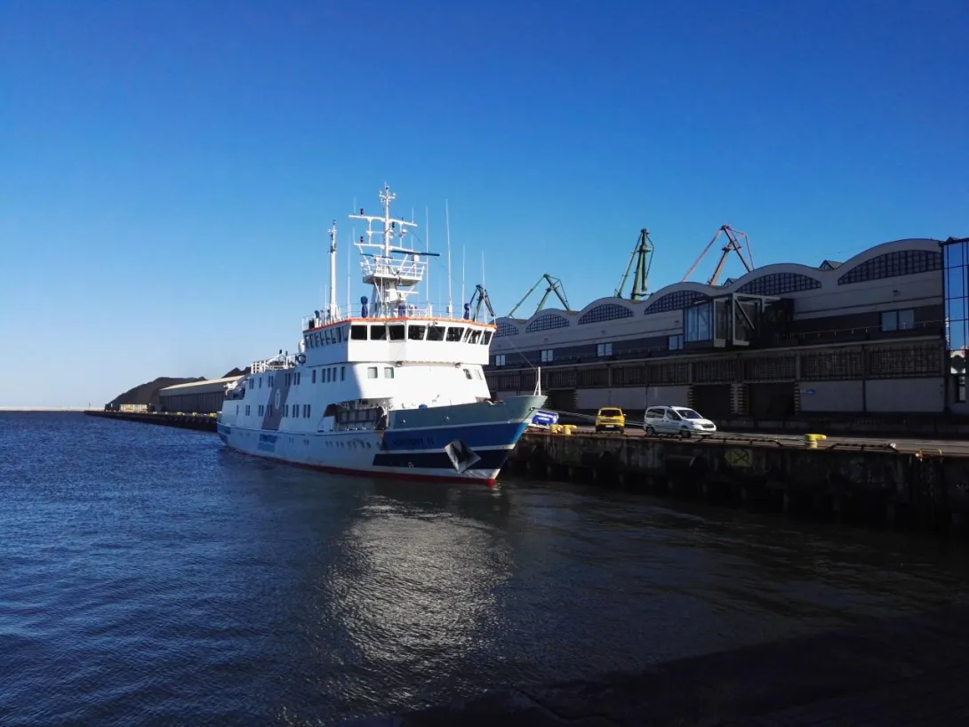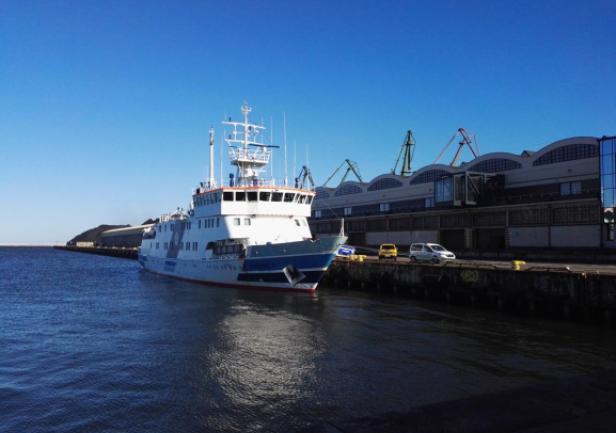 Po ćwiczeniu, około 14.00, cumowanie lewą burtą przy reprezentacyjnym, zarezerwowanym zwykle dla ekskluzywnych wycieczkowców, gdyńskim Nabrzeżu Francuskim. Wiało zdrowo z zachodu, 7 stopni Beauforta, w porywach 8. Sztormowo! Manewr podejścia obserwował Oficer Dyżurny Kapitanatu w Gdyni. Spokojne złożenie się do odbijacza portowego i Pan II-gi Oficer łatwo (i bezpiecznie) przeszedł na keje odebrać nasze cumy i szpringi. Ster strumieniowy dziobowy dopychał burtę do kei na moment przejścia.