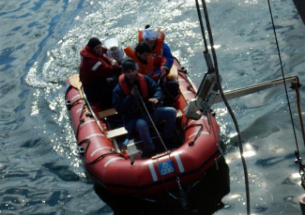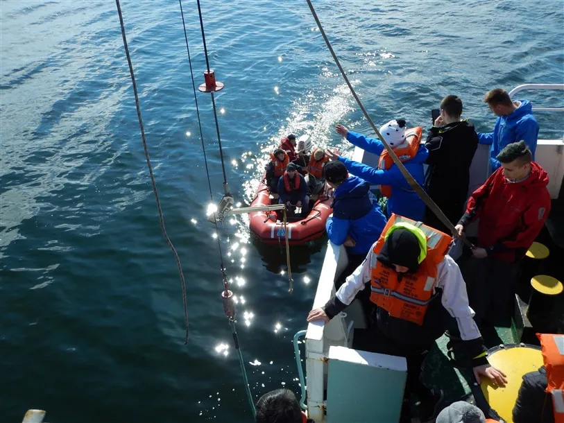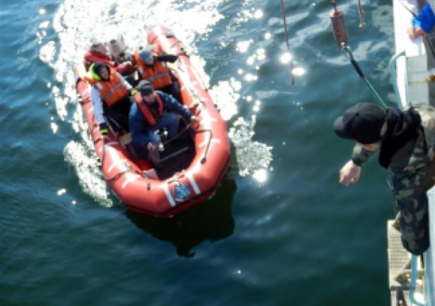A potem ćwiczenia w manewrowaniu RIB-em (pontonem) dla wszystkich praktykantów. I jeszcze na koniec stara marynarska sentencja : "jedna ręka dla siebie, druga dla statku!"