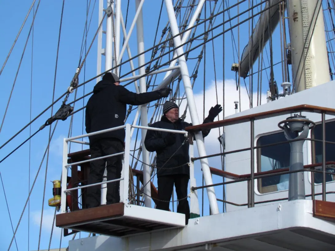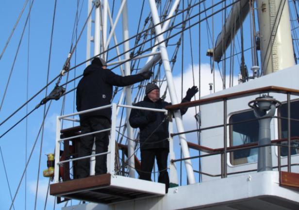 Na pokładzie "Daru" praktykę morską zaliczają studenci II roku Wydziału Nawigacyjnego AMG. Czeka ich wyjątkowo ciężkie zadanie - muszą w morzu uzbroić żaglowiec, czyli "przyszyć" komplet żagli. Ze względu na pobyt w stoczni, "Dar Młodzieży" wyszedł z gołymi rejami. W prawdziwie zimowych warunkach, praca z żaglami na rejach, wymagać będzie mocnego, marynarskiego charakteru. Będzie świetną, choć wymagającą szkołą dla przyszłych oficerów floty.