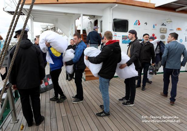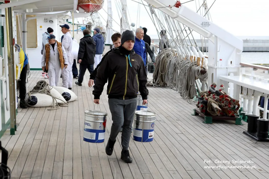 Kilka godzin przy Nabrzeżu Pomorskim, wykorzystano do sprawnie przeprowadzonej operacji zdania z pokładu zbędnych materiałów i przyjęcia niezbędnego zaopatrzenia oraz zmustrowania studentów. Ta sama grupa wróci jeszcze na "Dar Młodzieży" podczas Rejsy Niepodległości, na etapie Teneryfa - Kapsztad.