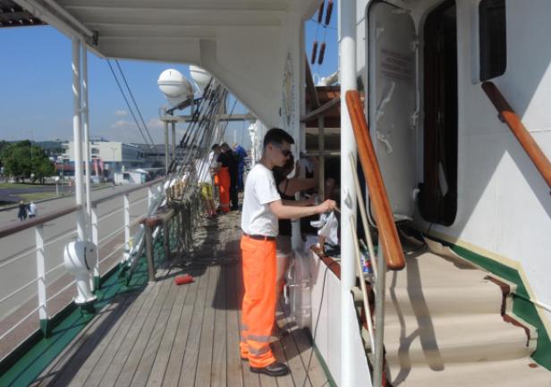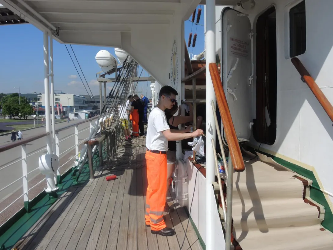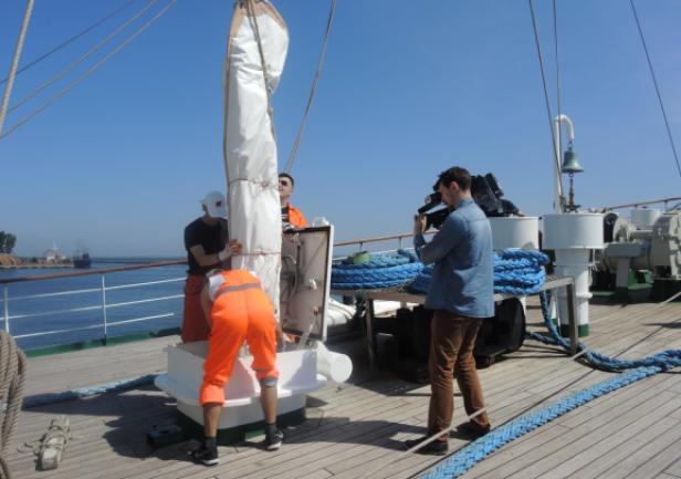 Młodzi praktykanci od wczoraj poznają smak codziennej marynarskiej służby. Prace bosmańskie, rozładunek zaopatrzenia, sztauowanie, pucowanie mosiądzów, służby na pokładzie i w kuchni. Na razie niewiele ma to wspólnego z wielką morską przygodą, ale już w niedzielne południe, poczują emocjonujący smak pożegnań, staną się uczestnikami, współtwórcami historii biało-czerwonej bandery.