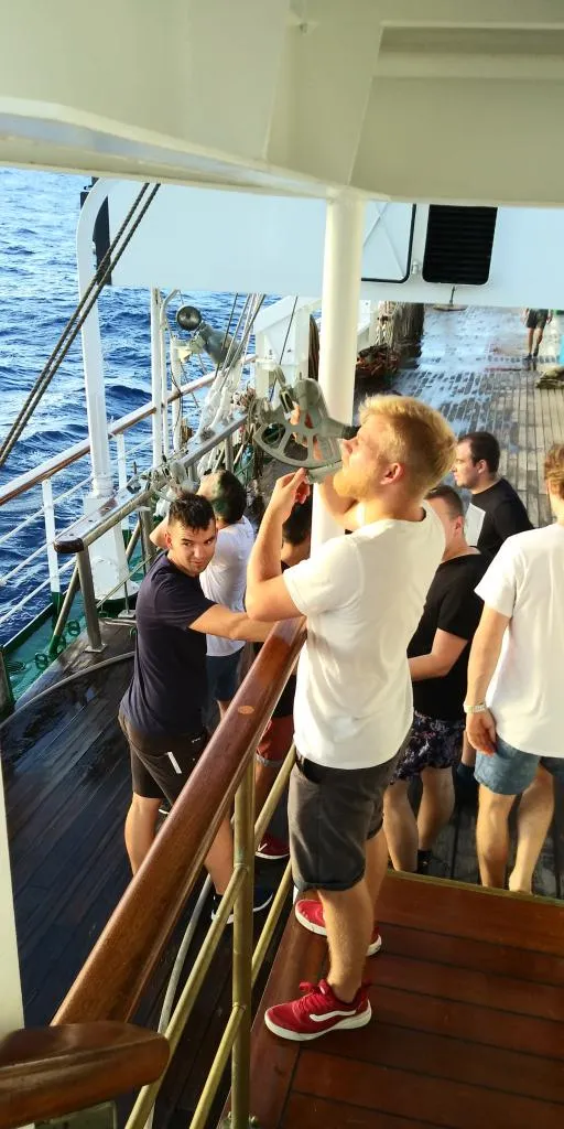 Dni mijają szybko i pracowicie. Praktykanci szkolą się w wielu kierunkach, a obsługa żagli jest jednym z najważniejszych elementów. Studenci Wydziału Nawigacyjnego, w czasie swoich wacht, maja zajęcia w 8 osobowych grupach. Wykładowcy żeby zrealizować program, przede wszystkim prowadzić praktyczne szkolenia z nawigacji i astronawigacji, organizują zajęcia 24 godziny na dobę.