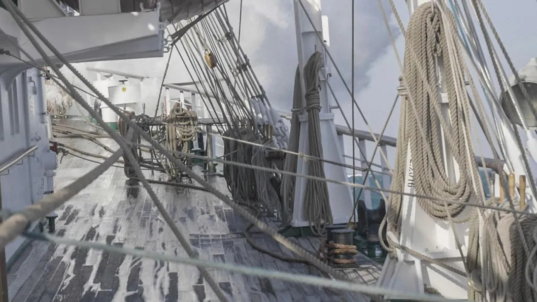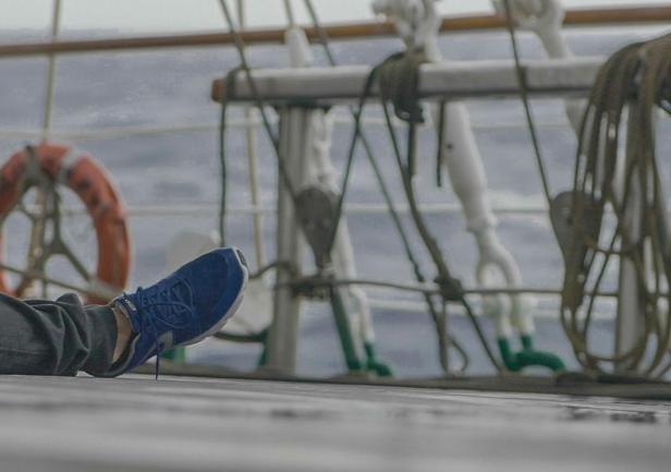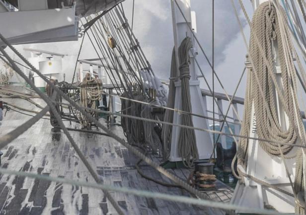 Po praktykantach widać zmęczenie złą pogodą, ale większość jest w dobrej formie. Szkolenie młodych nawigatorów toczy się normalnym trybem – „czy w sztormie czy w ciszy”. Jak tylko pogoda pozwoli prace konserwacyjne ruszą pełną parą. "Dar" musi się pięknie zaprezentować w Osace.