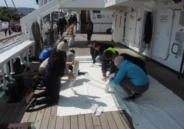 A poza tym na pokładzie normalny ruch - sprzątanie, czyszczenie, klarowanie ....... i wszechobecne ekipy radio-telewizyjno-filmowo-prasowe. Wywiady, pytania, pytania, pytania..... Na szczęście ratownicy z SAR-u są na wyciągnięcie ręki.