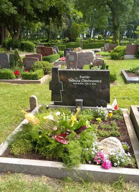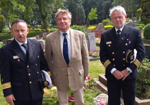 Komendant Lewandowski ze starszym oficerem Wiesławem Suchockim w towarzystwie profesora Hansa Rummla odwiedzili grób kpt.ż.w. Tadeusza Olechnowicza, ostatniego komendanta "Daru Pomorza" i pierwszego "Daru Młodzieży", który ostatni okres życia spędził właśnie w Bremerhaven.