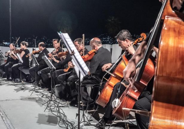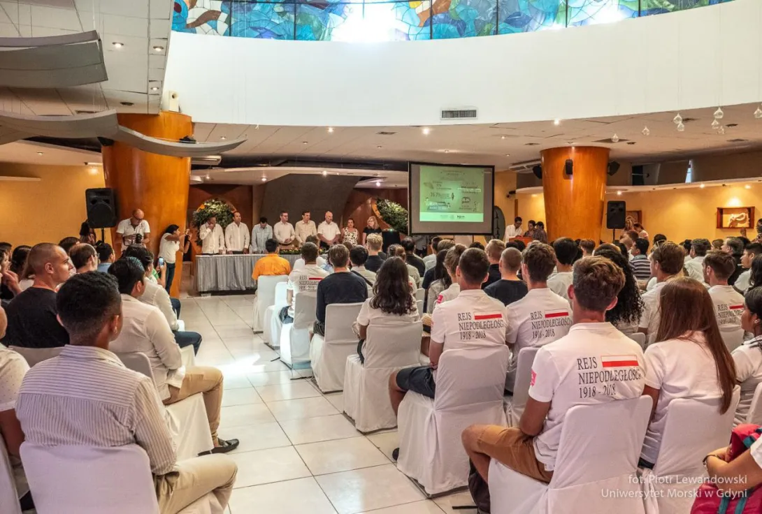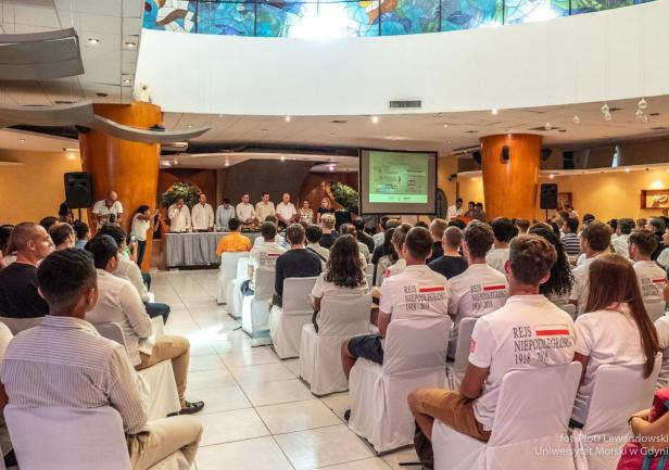 Zwieńczeniem dnia była ponowna wizyta w forcie San Pedro, gdzie uroczyście otwarto dwie wystawy: Polska Architektura i prac Magdy Firląg. Na murach fortu obejrzeliśmy video mapping o historii Acapulco. Wieczór zakończył się iście królewską kolacją na murach fortu wydaną przez Gubernatora Stanu Guerrero Pana Hectora Astudillo Floresa, na którą zaproszeni byli wszyscy wolni od wacht. Dania były wyśmienite, a w międzyczasie grała orkiestra kameralna Filharmonii Miasta Acapulco i zespoły folklorystyczne. Z fortu podziwialiśmy nocną panoramę Acapulco.