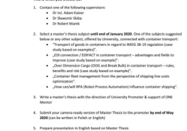 2. Select a master’s thesis subject until end of January 2020. One of the subjects suggested below or any other subject, offered by University, connected with container transport: