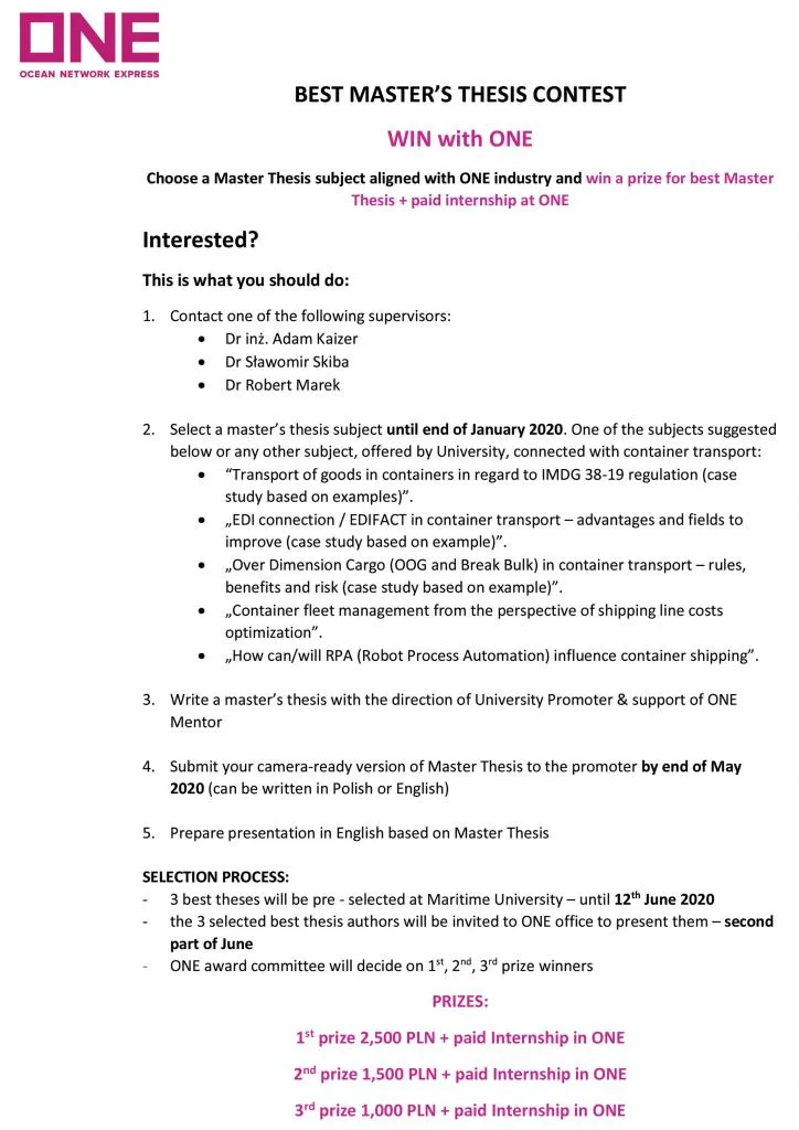 - 3 best theses will be pre - selected at Maritime University – until 12th June 2020