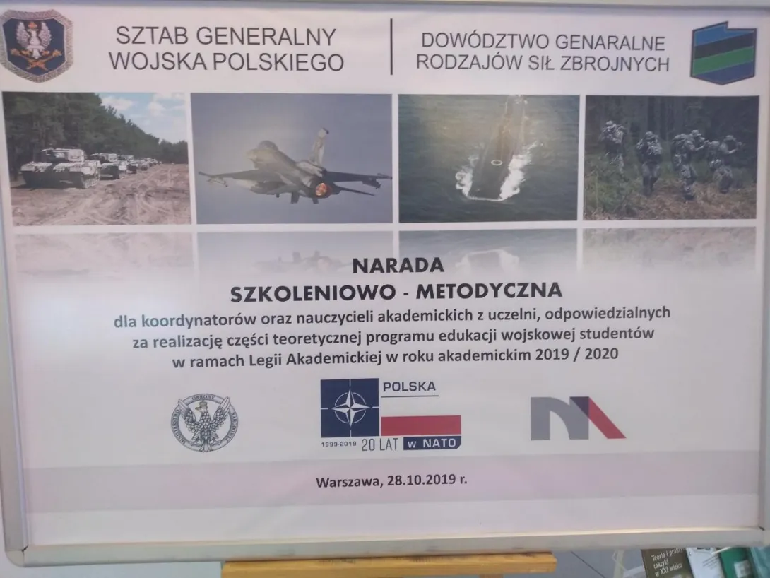 28 października br. przedstawiciele Uniwersytetu Morskiego w Gdyni wzięli udział w naradzie szkoleniowo – metodycznej dla koordynatorów odpowiedzialnych za część teoretyczną programu ochotniczego przeszkolenia wojskowego studentów „Legia Akademicka”, która odbyła się w Akademii Sztuki Wojennej w Rembertowie. W spotkaniu, oprócz koordynatorów, uczestniczyli m.in.: przedstawiciele Ministerstwa Obrony Narodowej, Sztabu Generalnego Wojska Polskiego, Dowództwa Generalnego Rodzaju Sił Zbrojnych, Wojewódzkich Sztabów Wojskowych, Wojskowych Komend Uzupełnień oraz  jednostek wojskowych i Centrów Szkoleń.