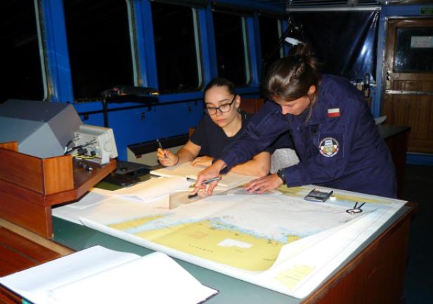 Podchorążowie mieli także okazję zapoznać się z niepowtarzalną cechą statku, w bezwzględny sposób egzaminującą praktykantów z odporności na chorobę morską.