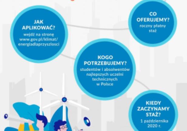 Ministerstwo Klimatu, PGE Polska Grupa Energetyczna S.A., Polski Koncern Naftowy ORLEN S.A.,Polskie Górnictwo Naftowe i Gazownictwo S.A. oraz Polskie Sieci Elektroenergetyczne S.A.ogłaszają nabór kandydatów na roczny, płatny staż w ramach piątej edycji: