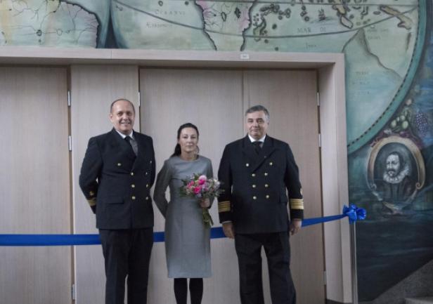 Uroczystego odsłonięcia muralu dokonali JM Rektor Uniwersytetu Morskiego w Gdyni prof. dr hab. inż. kpt. ż.w. Adam Weintrit, Dziekan Wydziału Nawigacyjnego dr hab. inż. Tomasz Neumann, prof. UMG oraz autorka dzieła, Joanna Rogowska.