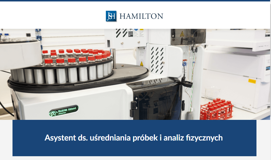 Asystent ds. uśredniania próbek i analiz fizycznych - J.S. Hamilton Poland