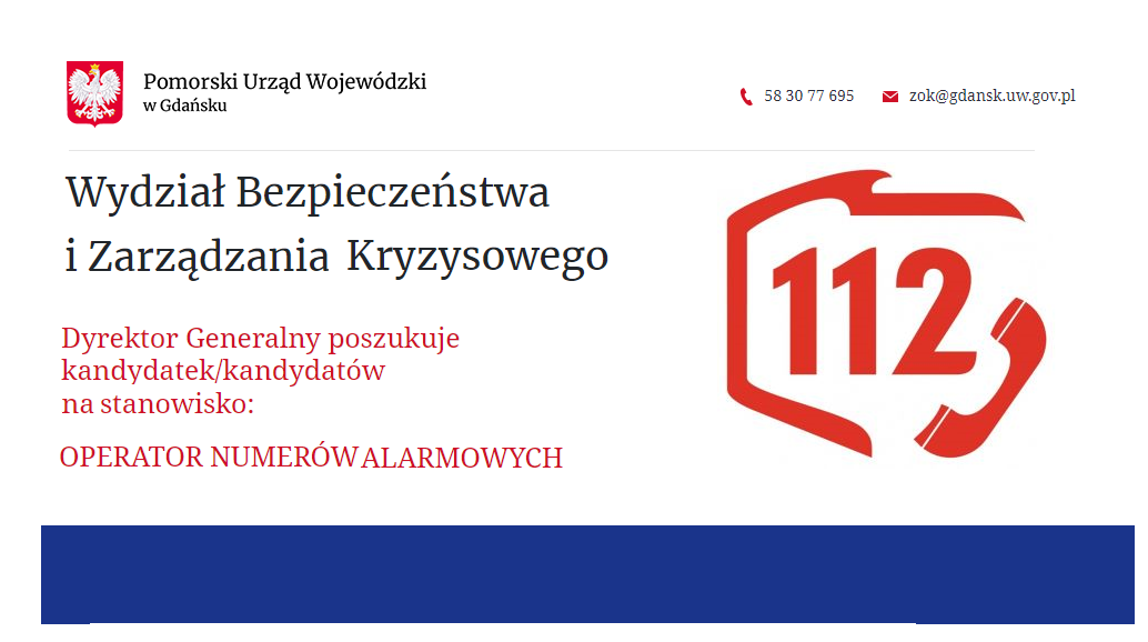 • W formie papierowej z dopiskiem: „Nabór na operatora numerów alarmowych” na adres: Pomorski Urząd Wojewódzki w Gdańsku ul. Okopowa 21/27, 80-810 Gdańsk Punkt przyjęć korespondencji w holu budynku Urzędu Na kopercie i liście motywacyjnym należy umieścić dopisek: 92/22