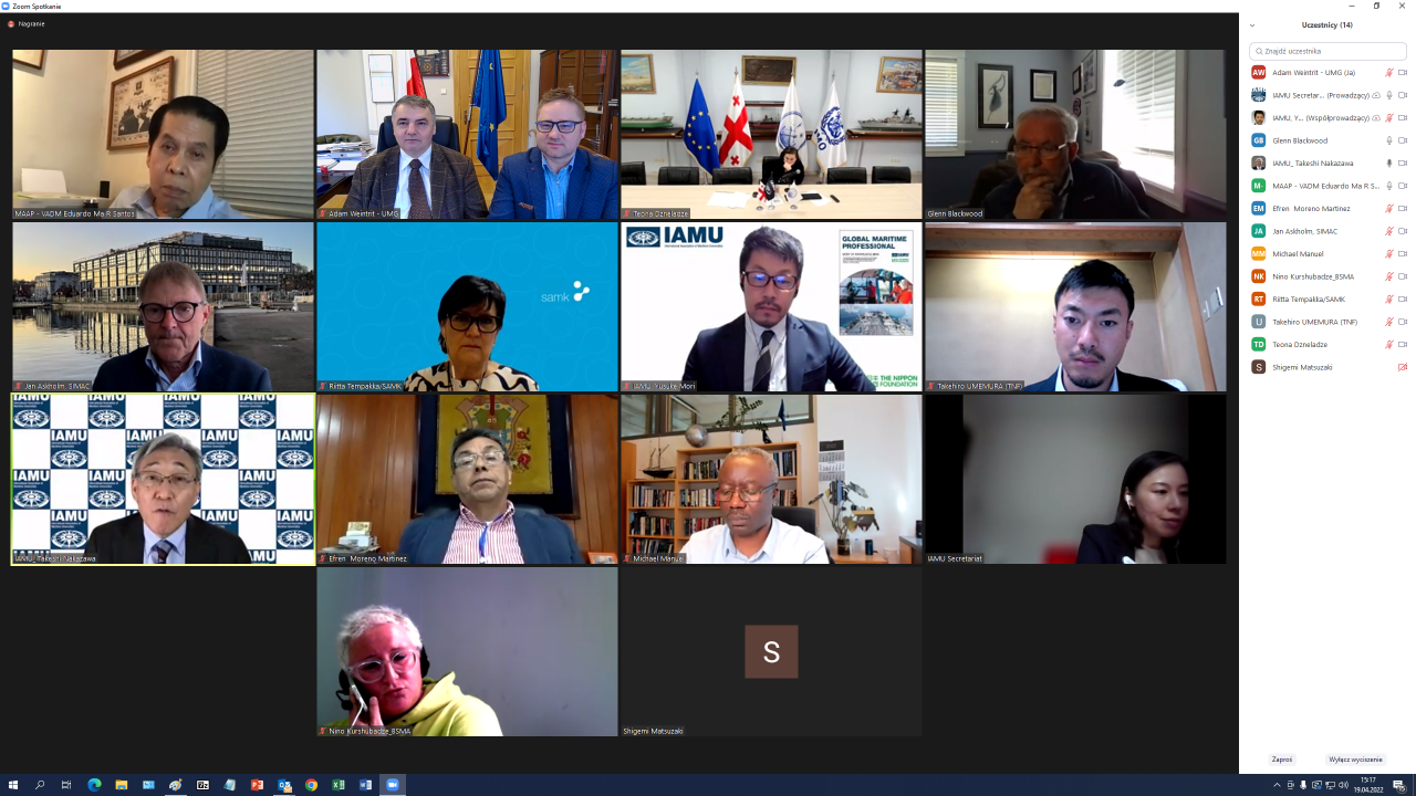 W dniach 18-19 kwietnia b.r. odbyło się w trybie on-line posiedzenie Międzynarodowej Rady Wykonawczej (International Executive Board) IAMU. W spotkaniu tym wzięli udział przedstawiciele  uczelni morskich reprezentujących poszczególne regiony świata oraz pracownicy sekretariatu IAMU w Tokio.
