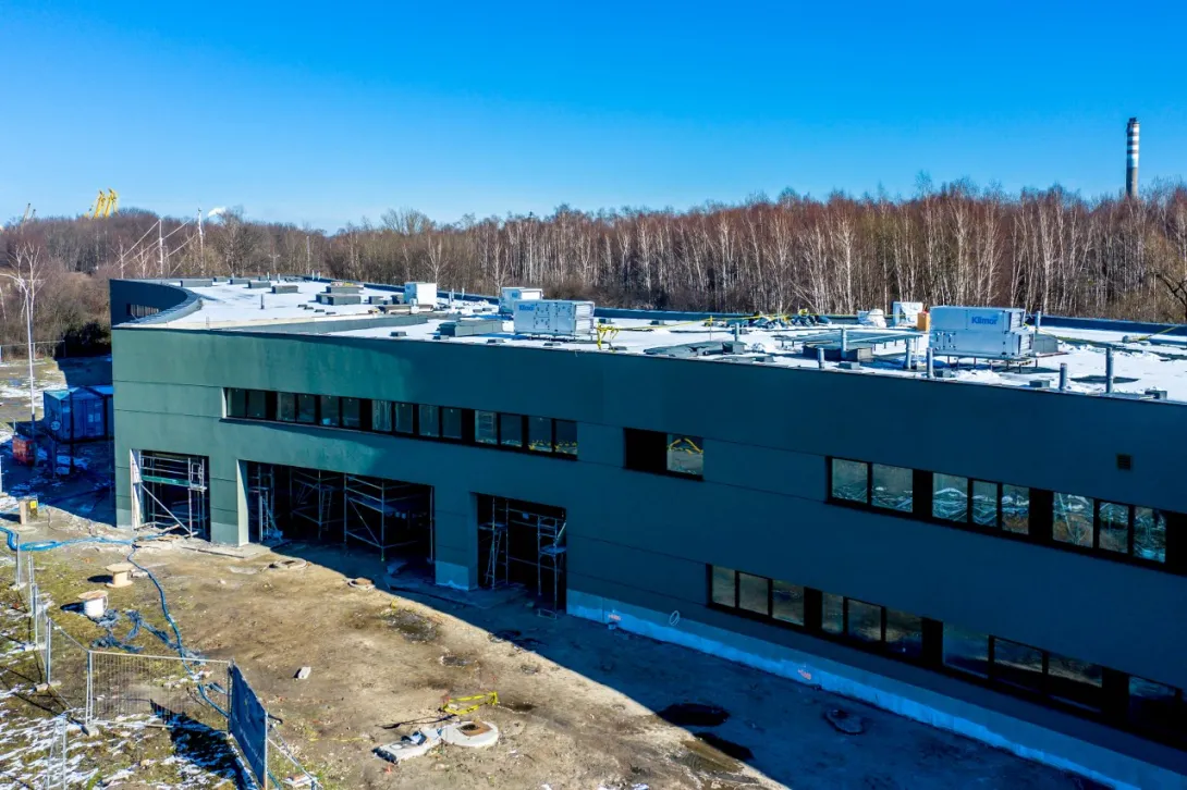 Obecnie prowadzone są prace wykończeniowe wewnątrz budynków – płytkarskie, malarskie, wykładzinowe. Trwa montaż stolarki drzwiowej oraz podwieszanych sufitów. Realizowane są również prace związane z elewacją budynku, roboty instalacyjne elektryczne i sanitarne, dostawa i montaż chłodni oraz prace związane z oddymianiem budynku i systemem p.poż.